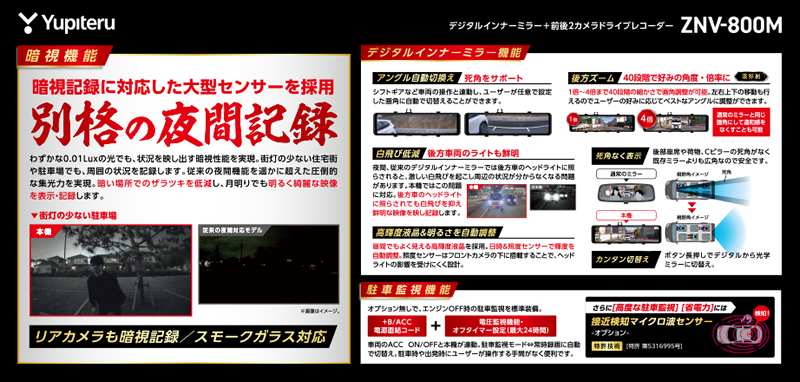 ●夜も鮮明、SUPER NIGHTモデル ●FULL HD録画 ●GPS・Gセンサー搭載
